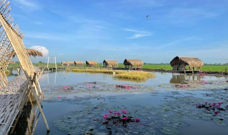 Tọa lạc Ấp 4, Mỹ Đông, Tháp Mười, Đồng Tháp, đến đây du khách du khách tha hồ check in với khung cảnh lãng mạn của cánh đồng sen cùng các tiểu cảnh và thưởng thức những món ăn đặc trưng Đồng Tháp.